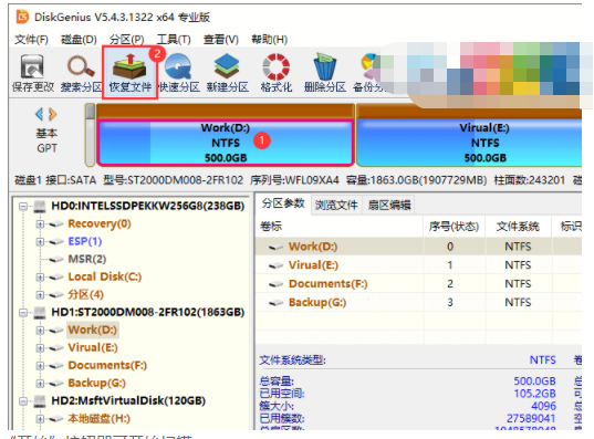 方法一:DiskGenius软件恢复硬盘磁头损坏数据