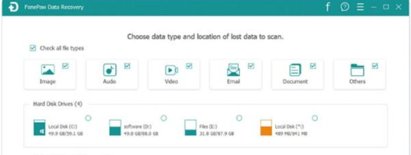 作为一款可靠的数据恢复软件,FonePaw Data Recovery可以从硬盘、SD卡、存储卡等介质中恢复已被删除的图像、音频、视频、电子邮件、文档、以及其他文件。您可以在Windows和macOS上使用它。