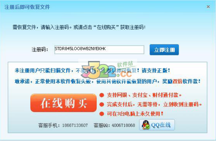 3、点击确定注册完成,现在用户可完全免费的使用u盘数据恢复大师。