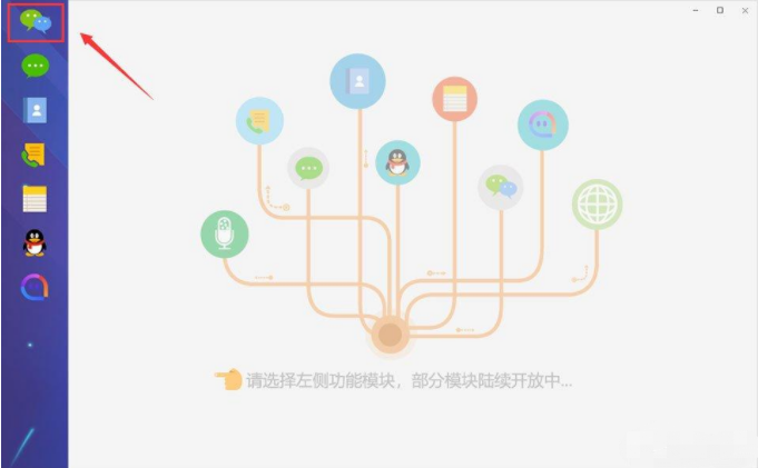 3、扫描完成后会弹出“模块选择”窗口,请选择您需要恢复的模块,以“微信”为例,点击第一个“微信记录查看与恢复”;