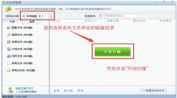 1、360u盘数据恢复工具怎么使用呢,首先进入主页页面的目录,选择开始扫描。