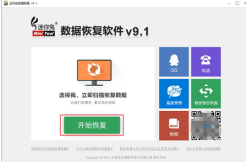 1、自行百度搜索下载安装迷迷兔数据恢复工具并点击打开,点击【开始恢复】。