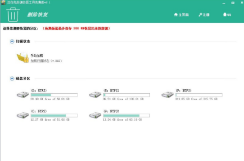 3、点击删除恢复,快速的对扫描状态进行快速的查看,也包括了对磁盘的分区进行选择。