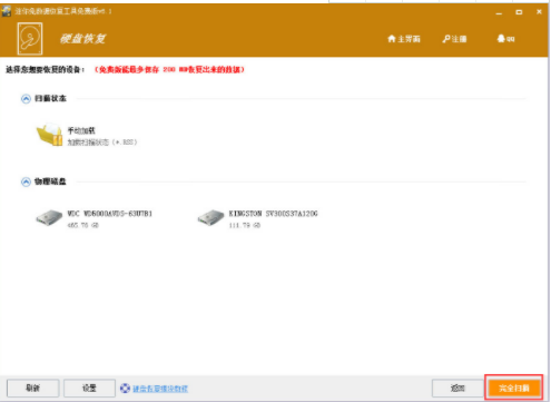 4、选择硬盘的恢复界面,进行完全的扫描。
