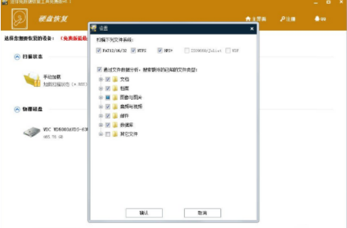 5、设置包括了扫描的文件系统、通过文件数据分析、搜索额外的已知文件的类型。