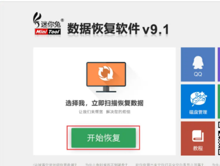 1、打开迷迷兔,点击开始恢复。