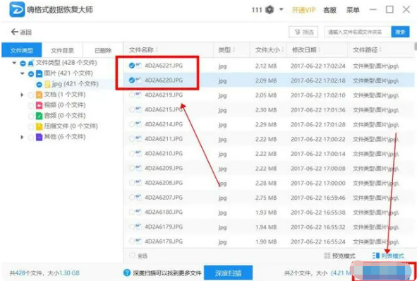 步骤3:软件很快即可扫描完U盘中的文件,在扫描结果中找到并选中要恢复的文件,点击下面的“开始恢复”即可。