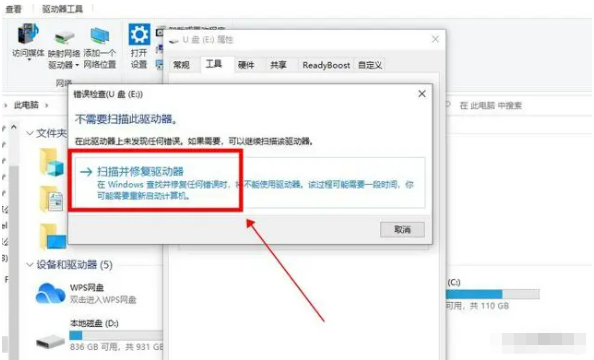 方法一:借助U盘属性修复