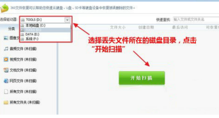 360数据恢复工具破解版使用步骤: