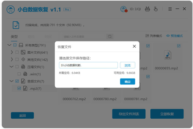 4、等待扫描完成后,选中需要恢复的文件,点击立即恢复。