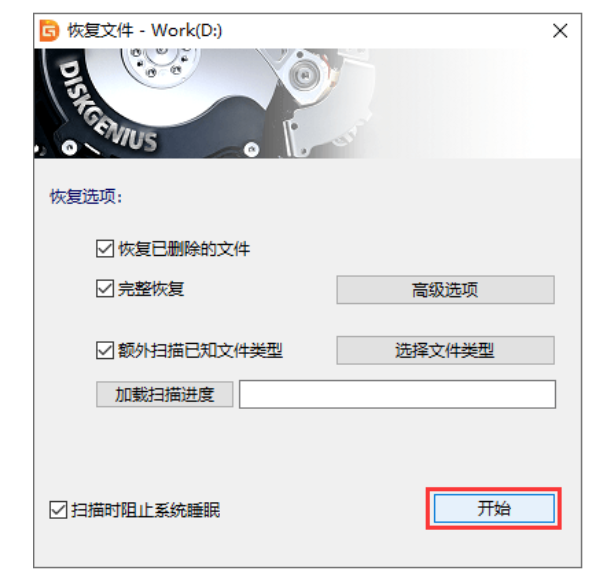 2、我们鼠标点击“开始”按钮进行扫描。