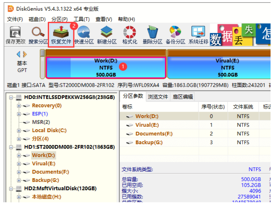 方法二:通过DiskGenius软件恢复数据