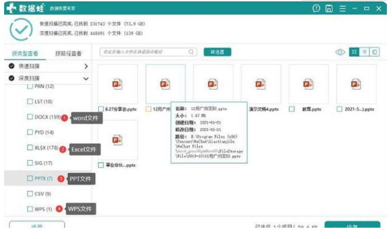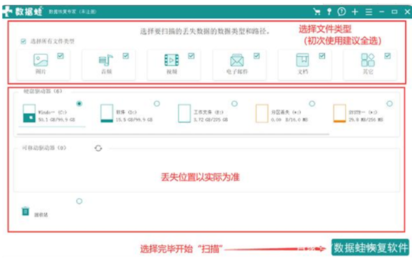 使用数据蛙数据恢复软件恢复数据: