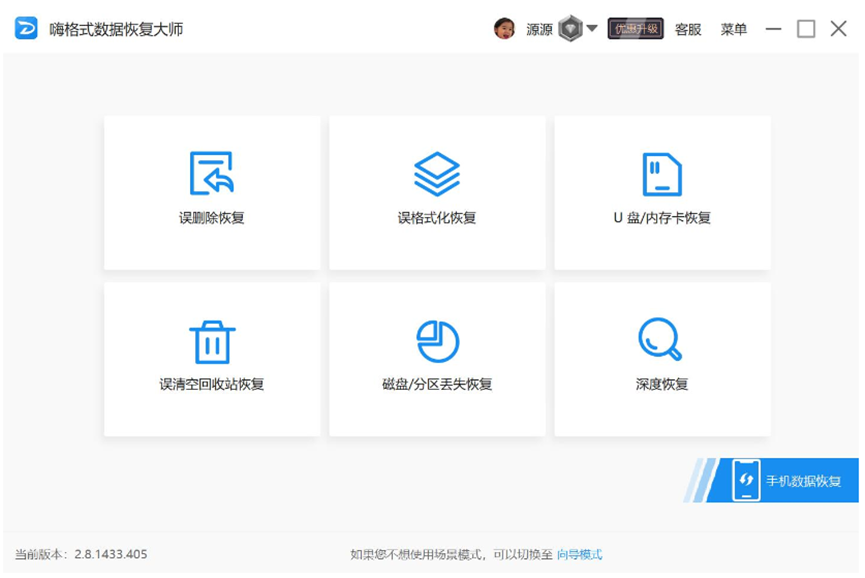 1、首先打开嗨格式数据恢复大师,选择需要的恢复模式。