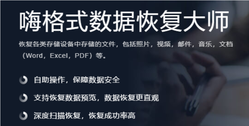 嗨格式数据恢复大师是专业的数据恢复软件。它可以恢复电脑硬盘、U盘、移动硬盘、SD卡等各类存储设备中误删除、误格式化、误清空的数据文件。Word、PPT、Excel、照片、视频等各种类型文件都可以恢复。