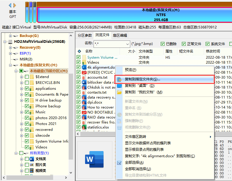 第四步:复制文件,完成硬盘数据恢复。