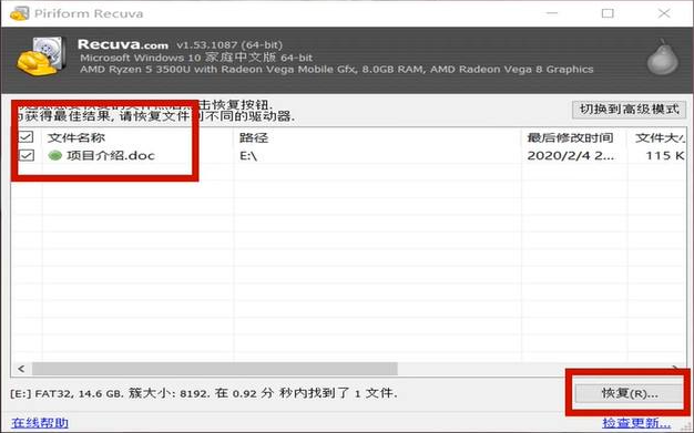 recuva数据恢复免费版使用方法