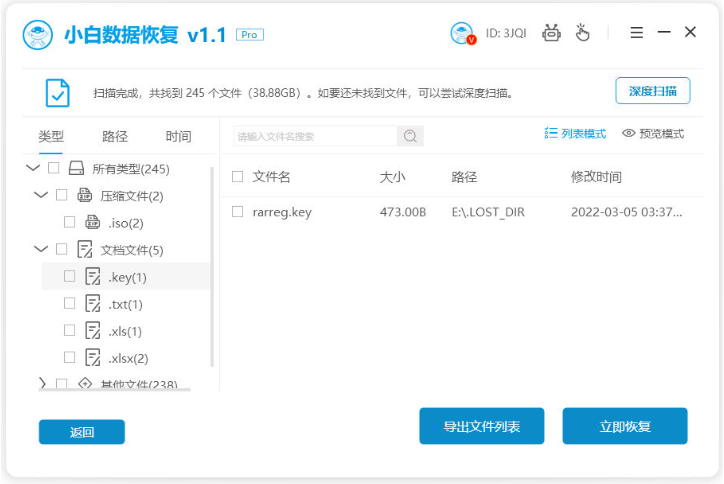 软件版本:小白数据恢复软件1.1