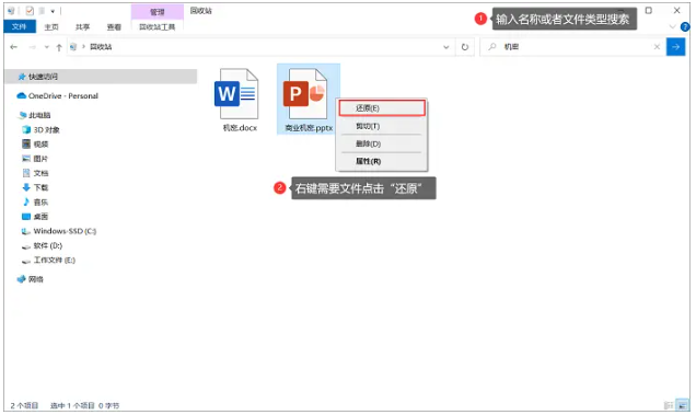方案一:在回收站内还原丢失的数据