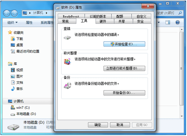 2、接着在弹出的属性窗口里,选择“工具”选项,点击“查错”栏下方的“开始检查”。