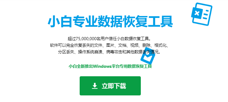 2、进入到官网后,我们就可以直接点击“立即下载”,将小白数据恢复软件下载安装到电脑上使用啦。