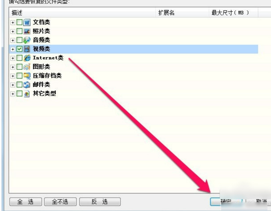 3、使用diskgenius选择好恢复文件的类型后点击确定。