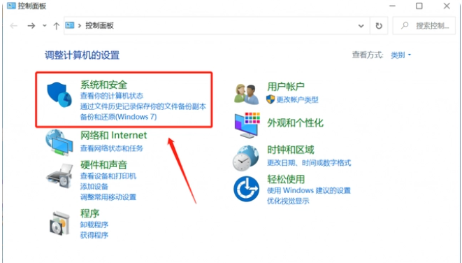 2、在控制面板中,找到并点击“系统和安全-文件历史记录”进入。