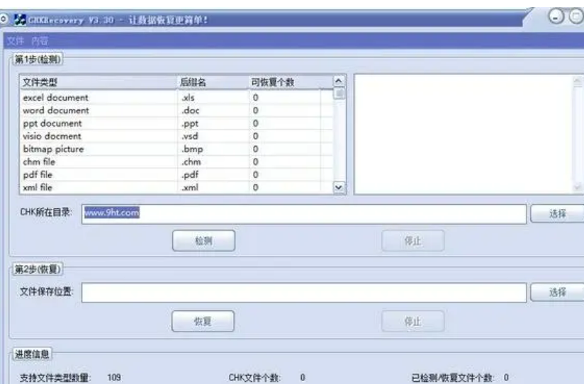 CHKRecovery软件的应用范围与功能:可恢复后缀名为。chk类型的文件,支持doc、ppt、xls、rar、jpg、txt、dwg、程序源码…等类型,支持100多种文件类型的恢复。