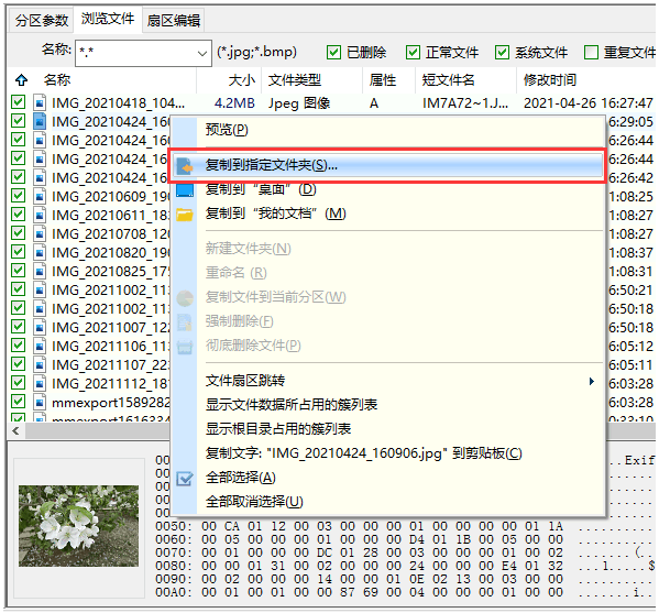 5、将扫描结果中的数据复制到其他盘,完成恢复过程。