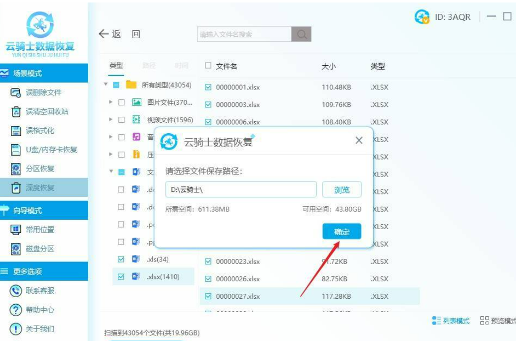 4、选择我们需要恢复的excel文件,即可勾选文件格式(自动全选属于该格式的文件),点击【立即恢复】,把恢复出来的数据保存在其他安全的磁盘中。