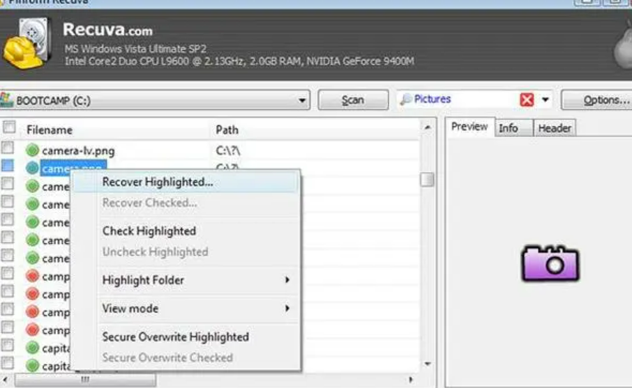 Recuva是一款Windows平台下的文件恢复软件,可以恢复误删的任意格式的文件,同时可以恢复硬盘、U盘、内存卡等等设备的文件,只要没有重复写入数据,无论如何格式化都可以进行恢复,支持FAT12、FAT16、FAT32、NTFS