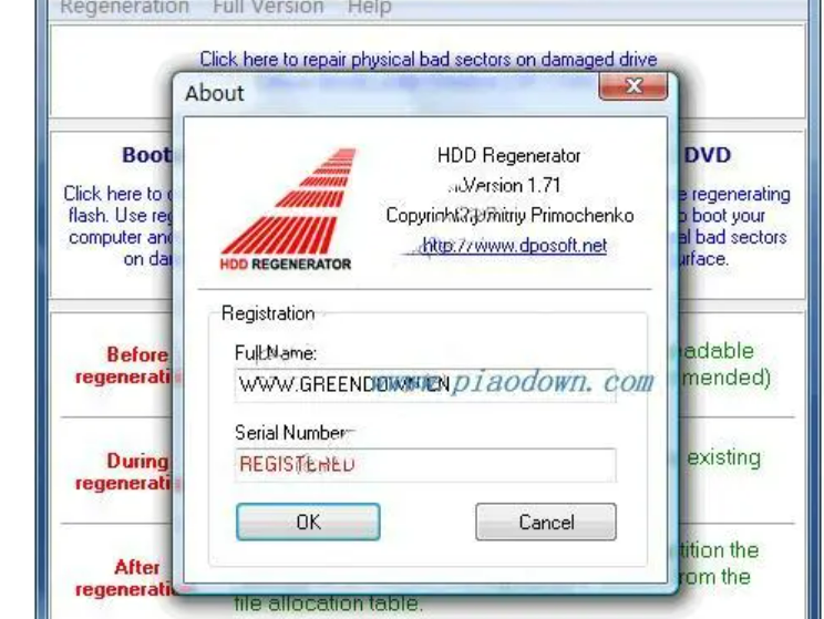 HDD Regenerator是一个功能强大的硬盘修复软件,HDD Regenerator程序可以帮助你真正的修复再生磁盘表面的物理损坏,比如坏扇区,而并不是仅仅将其隐藏!程序程序安装后会帮助你创建一个引导盘,然后引导你在DOS进行硬盘的修复再生工作,界面友好,非常容易操作。