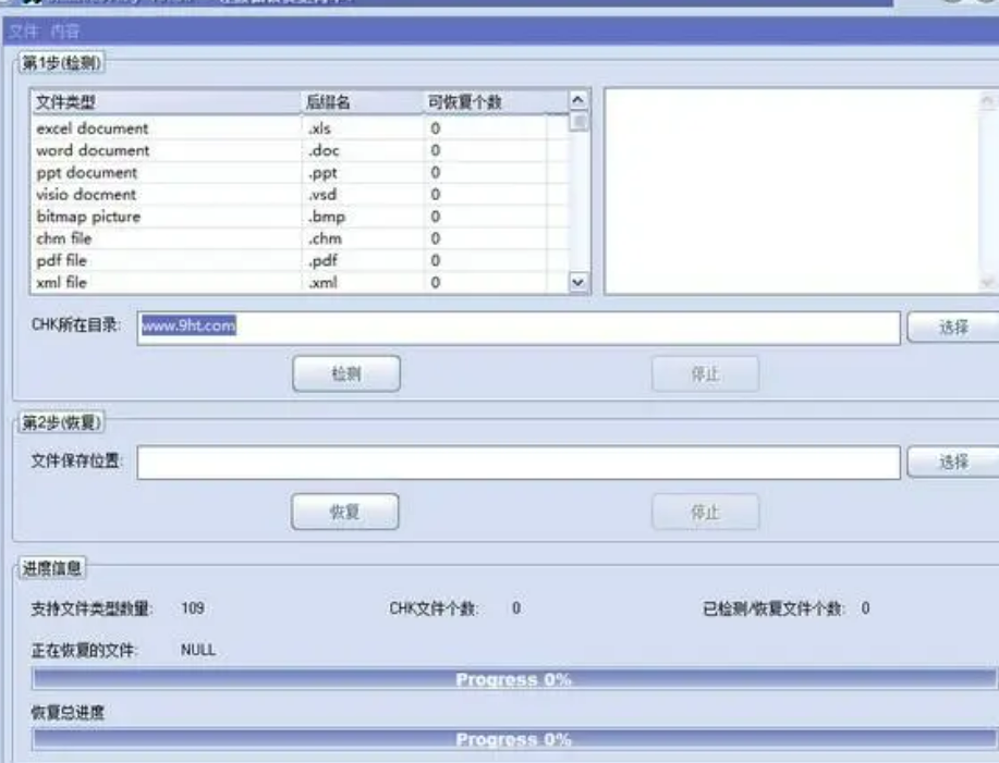 CHKRecovery软件的应用范围与功能:可恢复后缀名为。chk类型的文件,支持doc、ppt、xls、rar、jpg、txt、dwg、程序源码…等类型,支持100多种文件类型的恢复。