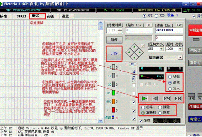 Victoria这款工具具备硬盘表面检测以及硬盘坏道修复以及SMART信息察看保存还有Cache缓存控制等各种功能。