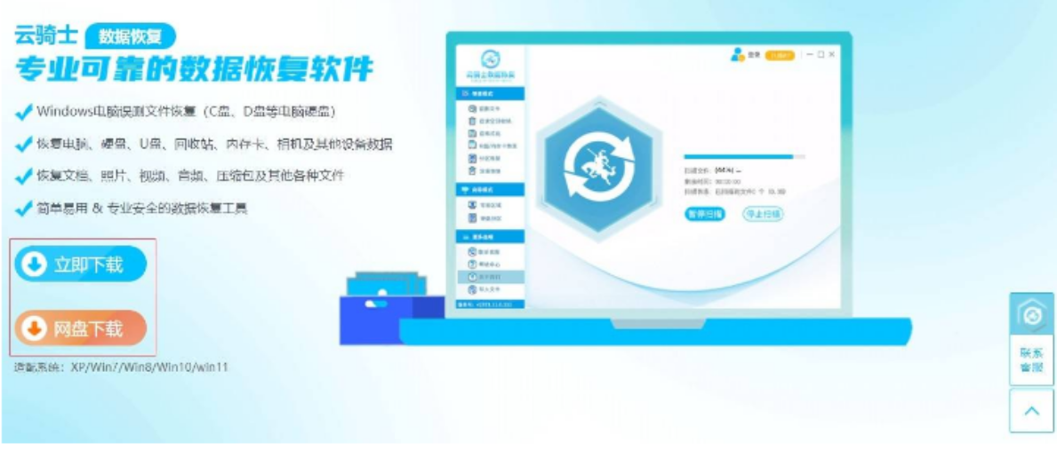 1、如何获得云骑士数据恢复大师的权限呢?首先我们先到官网下载最新版本的云骑士数据恢复软件,可以安装在我们不用恢复数据的电脑本地磁盘。