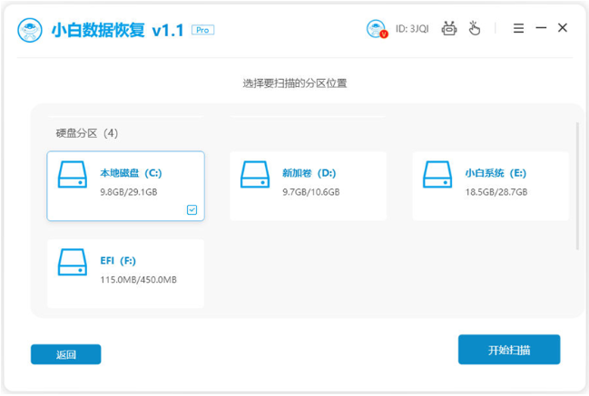 1、首先我们在电脑上下载安装好小白数据恢复软件打开。
