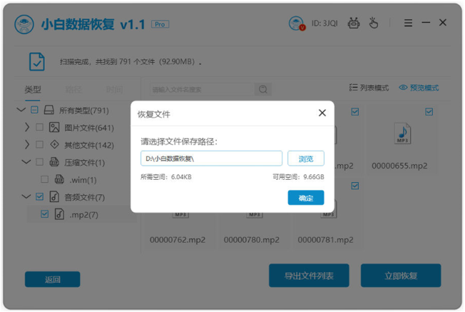5、我们确认好要恢复的文件保存路径,然后点击确定。