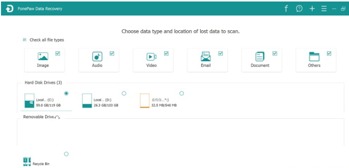 FonePaw Data Recovery这是一款功能强大的数据恢复收费的工具,可以帮助大家快速从 Windows 电脑、外接硬碟、记忆卡、随身碟中恢复因资料删除、回收站清空、误格式化磁盘、断电数据丢失、磁盘分区表错误等原因导致的数据丢失恢复。软件支持恢复相片、视频、音频、电子邮件、答案及其他各种文件,而且也支持手机文件恢复,只要取出其中的内存卡就可以啦。