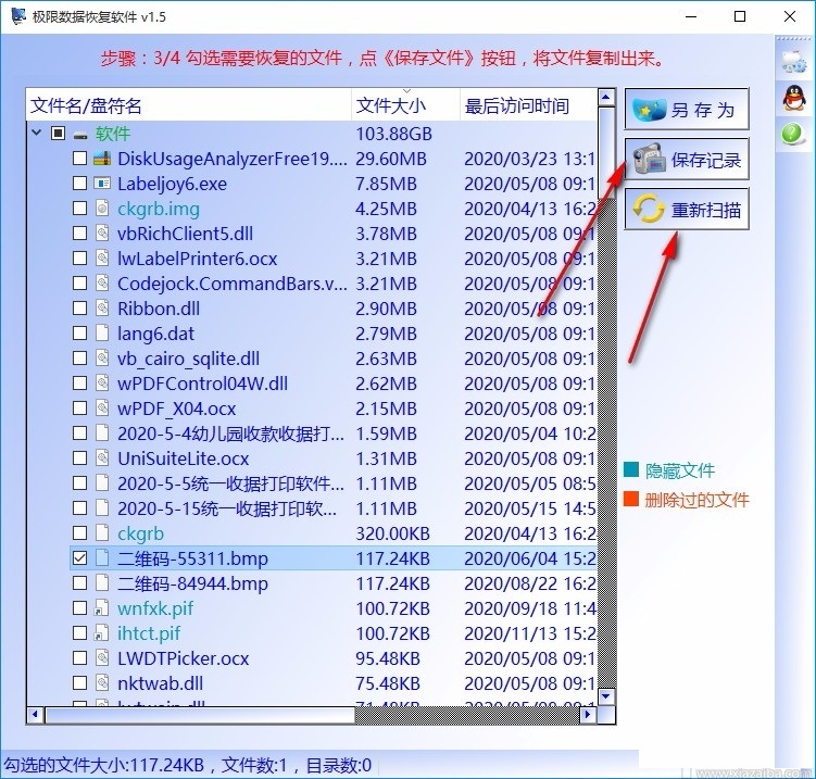 7、可选择查看保存记录,也可选择重新扫描,快速进行选择