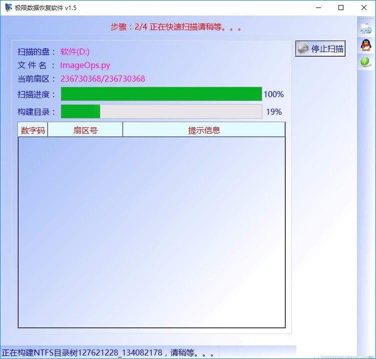 4、扫描过程中,可随时点击停止扫描,自由进行选择