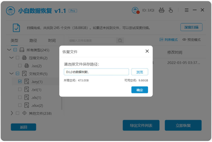 软件版本:小白数据恢复软件1.1