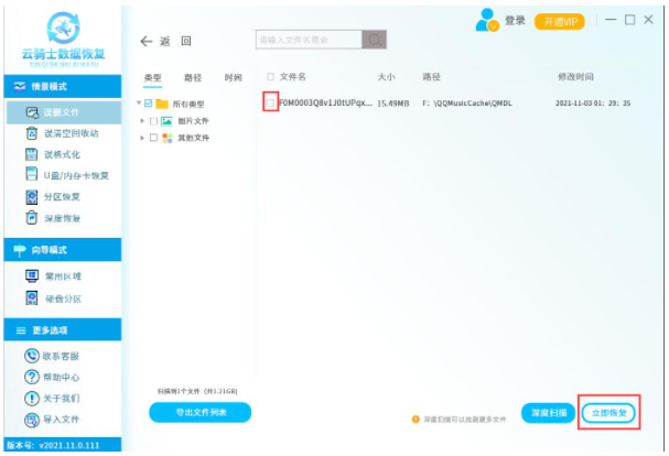 软件版本:云骑士数据恢复软件
