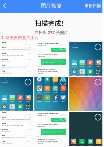 5、扫描结束后,在界面中将会显示扫描出来的数据,请勾选要恢复的手机照片文件,等待数据恢复完成即可。