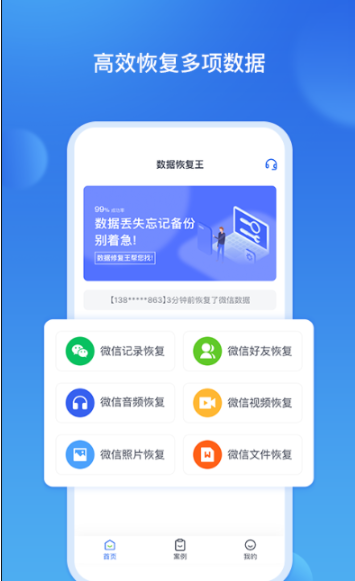 数据恢复王这是一款十分专业的手机卡数据恢复工具,它通过强大的系统底层扫描检测技术,快速的找回并恢复我们丢失的手机数据,支持误删及未保存微信语音、图片、视频、文件恢复。