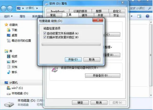 方法一:使用windows自带的硬盘检查系统恢复