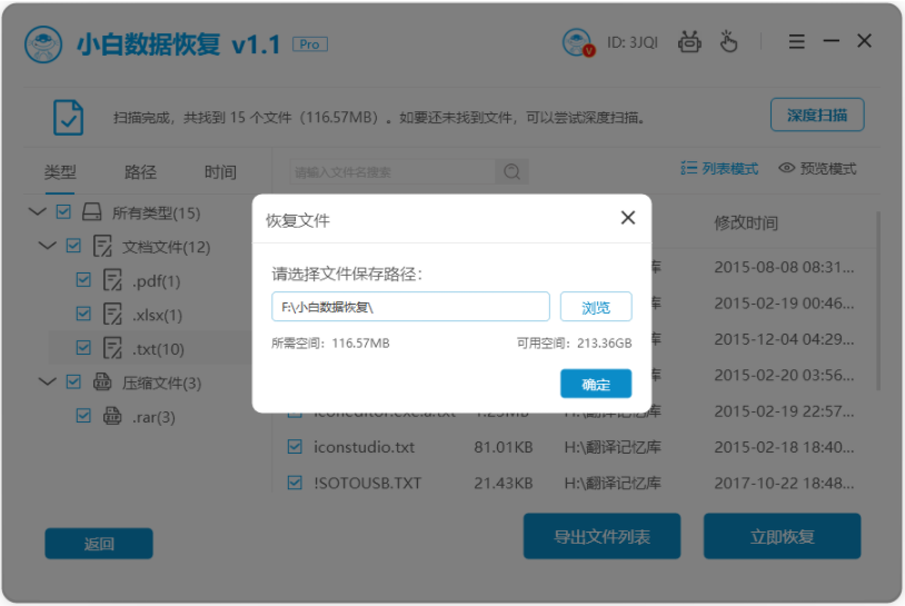 3、我们扫描完成,可以可通过文件类型/大小/路径等方式快速筛选出所需文件,然后点击右下方的“立即恢复”。
