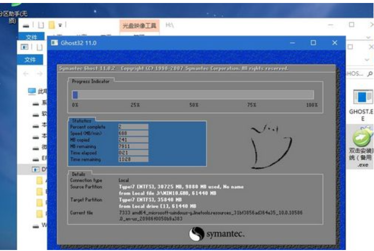 7、进入重启阶段,移除U盘,重启后电脑会自动进入系统部署阶段,无需操作,过程耗时较久,耐心等待。