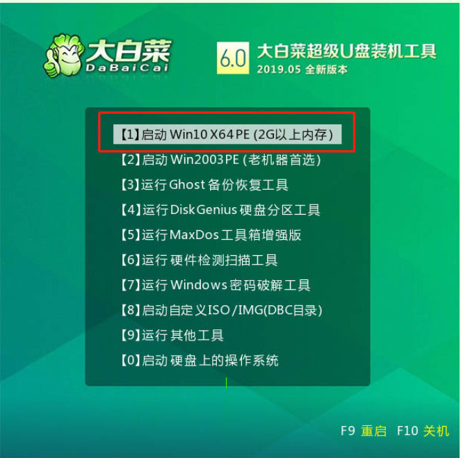 4、我们选择【1】Win10X64PE(2G以上内存),可以按回车键进入winpe桌面。