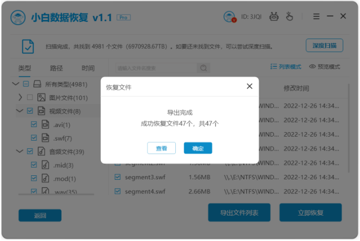 以上便是电脑数据库删除数据恢复的方法步骤,这里给大家介绍了两种好用的工具,分别是小白数据恢复软件以及diskgenius软件的使用步骤,大家根据自己的实际情况选择合适的工具操作即可。