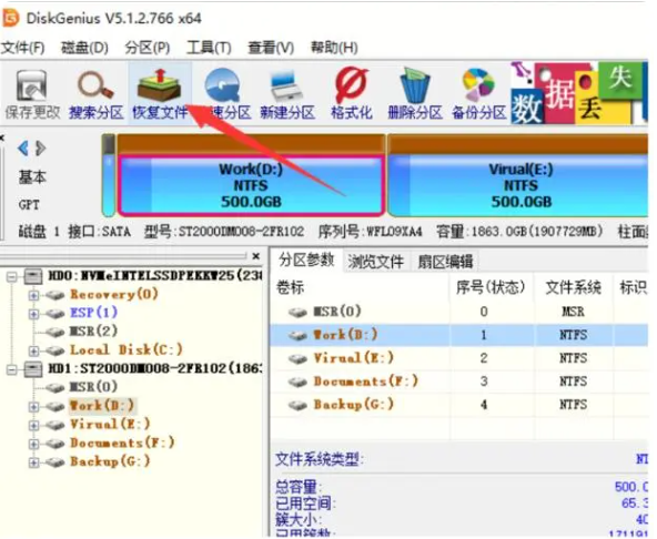 除了小白数据恢复软件之外,diskgenius软件也是一款比较实用的数据恢复软件,下面也给大家演示下使用步骤: